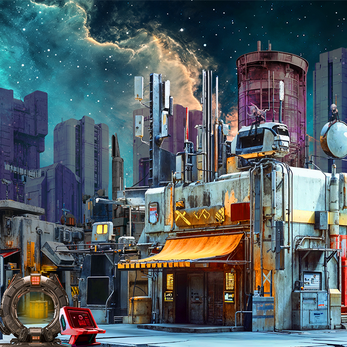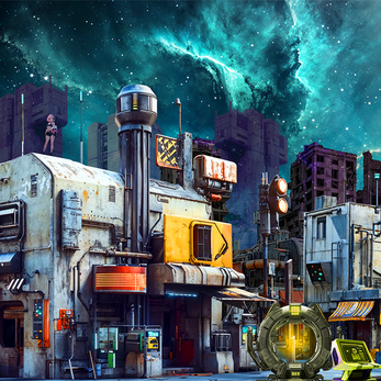 超虚構東京街と「彼女達」のグラフィックスを交差するデジタル・アート作品です。
